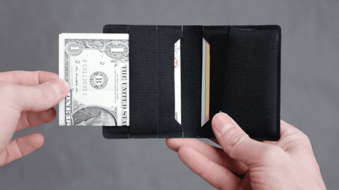 この薄さ7mmのミニマル財布には、10枚のカードと紙幣が収まります。