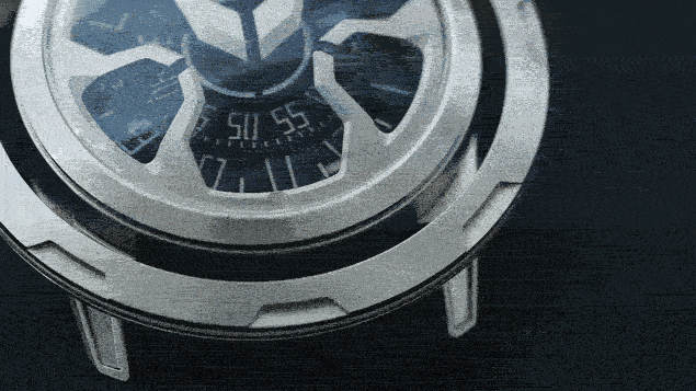 文字盤がゆっくりと回転する機構を搭載。言うなれば腕に着陸したUFO。