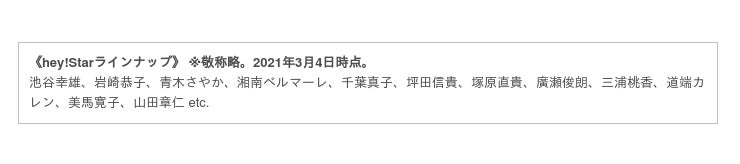 料金 :イベント期間中はどのhey!Starも一律で税抜¥10,000(内50%が寄付として拠出されます)