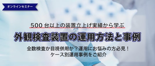 本セミナーでは検査装置の運用方法や目視検査併用のメリットをケース別に紹介し、後悔のない検査装置選びについて解説いたします。
