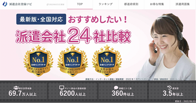 派遣会社登録ナビ:派遣社員で働くために有益な情報を提供します。特に、都道府県別の派遣会社ごとの求人件数と職種については、毎月更新をし、最新の情報を提供しています。