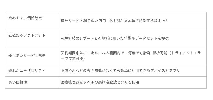 NAIS Entryは、技術・製品・サービスの有用性等に関して、生体情報(脳波)を用いた客観的な評価・検証を簡易に実現することで、民間企業及び大学等の研究開発活動を支援します。