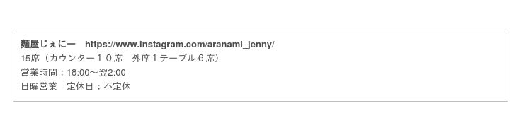 まず一番手前のお店がラーメン屋です。名前は麺屋じぇにー