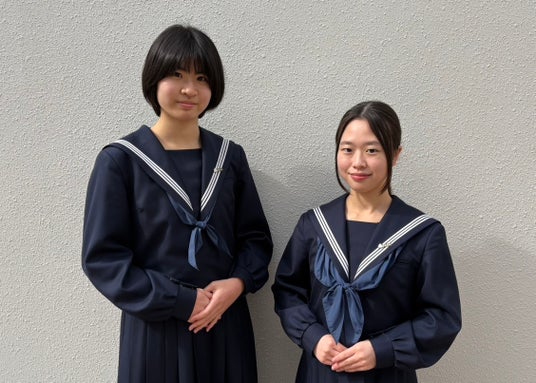 中高生探究フォーラムを立ち上げた福岡県立香椎高等学校2年松木(左)・高島(右)