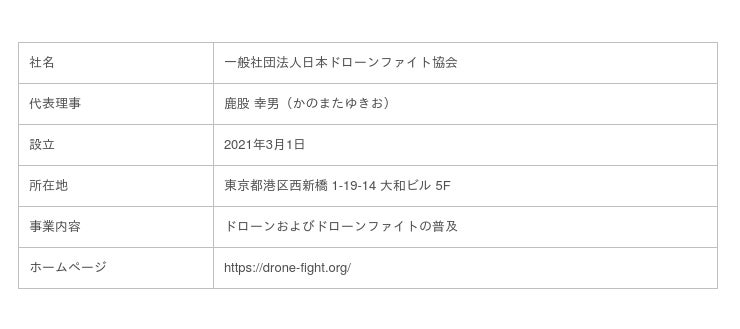 2021年3月1日 競技名を『ドローンファイト』に改称し、一般社団法人日本ドローンファイト協会設立