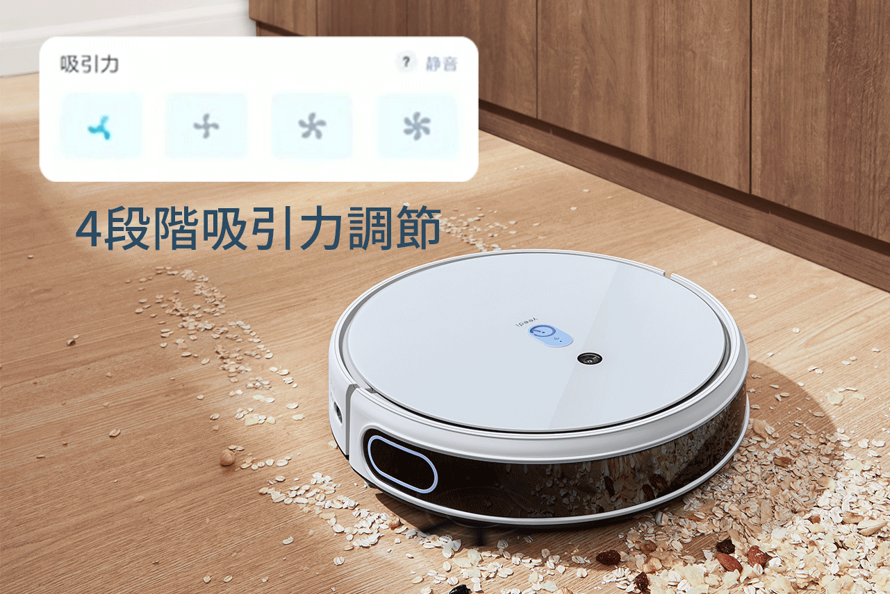 最大2,500㎩で、4段階調節可能なパワフル吸引モードは水拭きモード、自動洗浄システムと合わせ技で徹底したキレイをご提供致します。