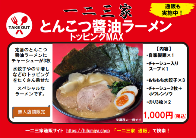 通販が人気の家系ラーメン店「ラーメン一二三家(ひふみや)」が 2022年3月15日に365日24h営業の無人販売所