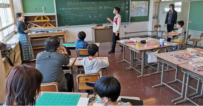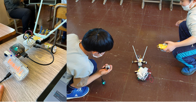 そして、つくったプロトタイプを発表。子どもたちにより作成されたおもちゃのプロトタイプは「色を判別して音が出るアクセサリー」や「光りながら走るロボット」など非常に多様でした。そして、自分がつくったプロトタイプを動かしながら説明してくれました。