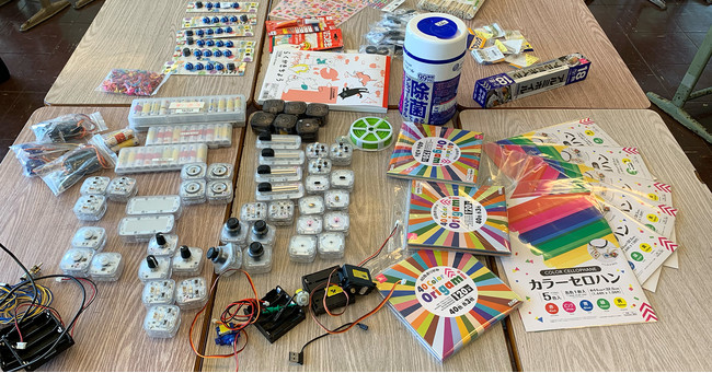 プロトタイピングワークショップには合計6名の小学生が参加し、自分だけのおもちゃのアイデアを考えました。そしてそのアイデアを、紙・ダンボール・セロファンなどさまざまな工作素材と、プログラミングを簡単に体験することができるツールVIVIWARE Cellを用いてプロトタイプを制作。「手の動きに反応して、光りながら地球征服をたくらむ宇宙人」や「暗くすると吹っ飛ぶ校長先生」など、さまざまなおもちゃが生み出されました。
