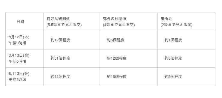 ※予想流星数はあくまでも目安です。実際には観測してみないとわかりません