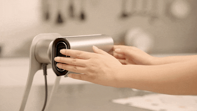 これまでに自社ヘアドライヤー製品を使用した多くの女性ユーザーの意見を取り入れ、ハンドドライヤーの風は肌を刺激しない40℃弱の温風に調整。冬場に限らず、手洗いや家事で荒れやすい手を優しく乾燥させます。
