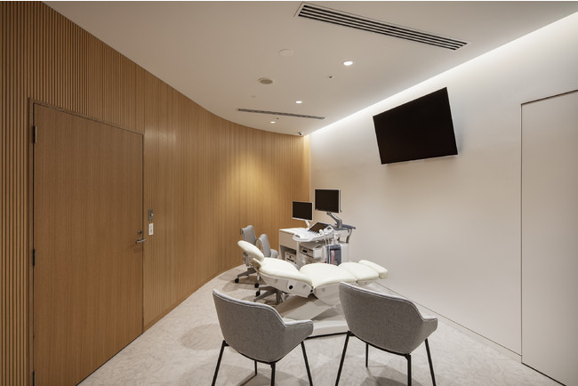 院内の待合室・診察室・カウンセリングルームは完全個室です。受診は予約制で、予約時間を工夫することで、受診者同士が顔を合わせにくいプライベート空間となっています。東京湾を一望できる眺望や、丸みを生かした院内空間で、胎児の健康状態を調べることに不安や罪悪感を感じている方が、少しでも前向きな気持ちで胎児に向き合えるよう配慮しています。
