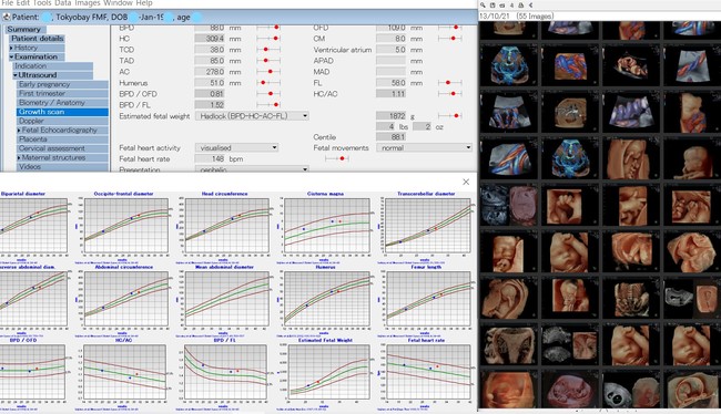 FMF胎児クリニックでは、胎児カルテ『Astraia』(独、 Astraia社)を導入しています。これにより、日々成長する胎児の発達を正確に評価し、トリソミーの可能性を定量的に評価したり、妊娠後期に起こる妊娠合併症のリスクを算出することができます。FMF胎児クリニックで妊娠初期コンバインドテスト&中期ドックを受ける方は、トリソミーの可能性が1%以上の場合など一定の条件下で、NIPT検査や羊水検査手技料を自己負担なしで受けられます(希望者のみ)。