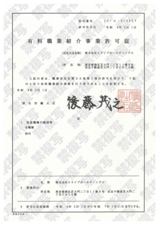 医師専門の資産形成コンサルティングを行う株式会社トライブホールディングス(本社:東京都港区、代表取締役:大山一也、以下当社)は、2022年2月1日に有料職業紹介事業の許可を取得いたしました。