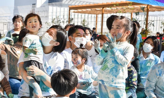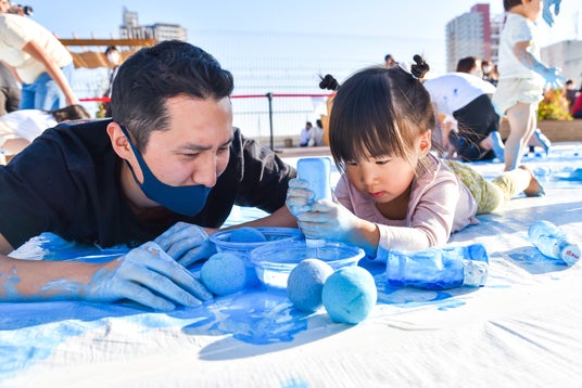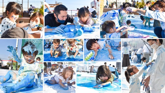 浦和親子教室 未来あそびラボが主催した「青空アート×ぐちゃぐちゃ遊び(R)」の様子