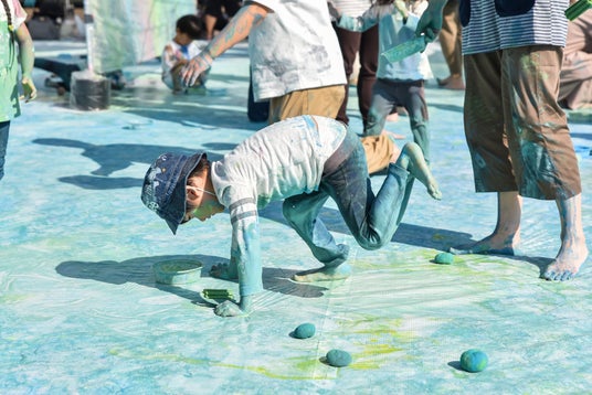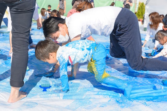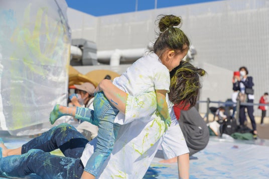 青空アートは、子どもも大人も一緒に大量の絵の具で遊ぶイベントです。