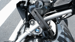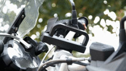 2つの機能を一つにして、走行中はスマホホルダー、停車中はヘルメットロック として使用できます。利用シーンは相互干渉しないため、同じスペースを共有できます。また、一般的なヘルメットロックのようにタンデムシート下の小さくて使いづらいということもなく、スムーズに脱着できる構造になっています。