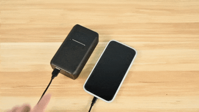 本体には、USB-TypeCとTypeAのポートが付いており、様々なデバイスの充電ケーブルに対応。TypeCは本体の充電用、TypeAは外部への給電用として活用できます。