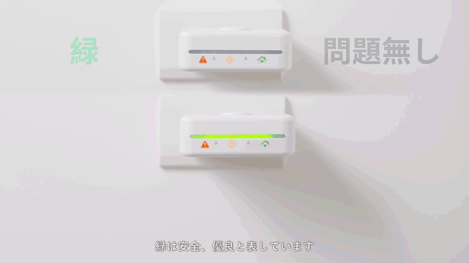 WIRECAREの使い方は、簡単でシンプル。コンセントにさすだけです。これなら、子供でもご高齢者でも、扱うことができます。しかもWIRECAREなら、緑、オレンジ、赤の表示色を確認するだけで安全性を一瞬でチェックできます。