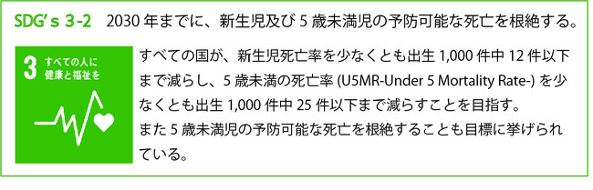 支援の目的は、30年後、「U5MR 5歳未満の死亡率(U5MR-Under 5 Mortality Rate-)」を半減させる世界の実現であり、その目的に共感してくれる仲間を集めています。