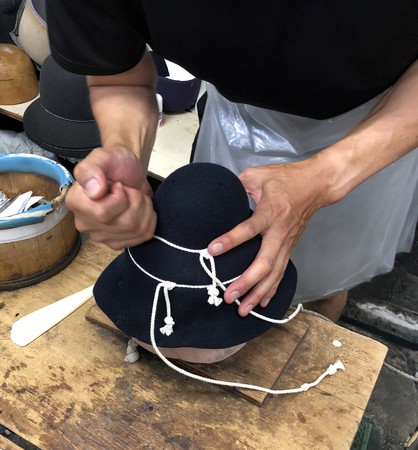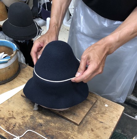 今回プロジェクトの対象とさせて頂くのは、フェルト製の帽子となります。電話、もしくはメールなどでお申し込みを頂いた後、弊社に帽子を送って頂きます。帽子に付いていた、リボンやスベリやネームを全て分解し、本体のフェルトを実際に被っていた帽子の型に近い小さい木型で、蒸気をかけながらリメイクします。リボンやスベリや品質表示など付いていたものを元のように取り付け完成です。帽子の大きさは、一般的なテディベアや、その他小振りの人形が被れる大きさとします。ご自宅にあるテディベアやお人形に被ってもらい、思い出をいつまでも大切にしてもらえる商品となっています。