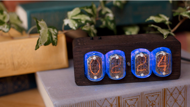 ニキシー管とは、ノスタルジックなオレンジ色の数字や文字を表示する放電管です。放電管が表す4つの数字で「時」「分」を表示します。放電管技術はかつては革新的な技術でしたが、その際立つ存在感から、今なお多くの人々の注目を集めています。