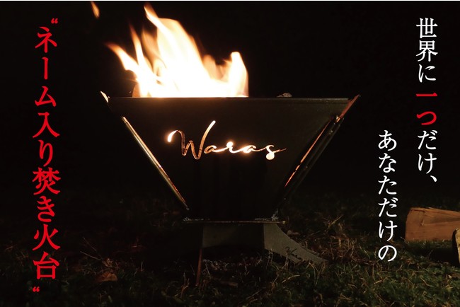 株式会社WARAS(東京都千代田区)のアウトドア部門OUTDOOR WARASと、卓越した板金加工技術力を持つ大熊製作所(埼玉県川口市)が共同開発した「世界に一つだけ、あなただけの "ネーム入り焚き火台" 」のクラウドファンドキャンペーン(https://camp-fire.jp/projects/view/523654)がキャンプファイヤーにて2021年12月24日より開始いたします。