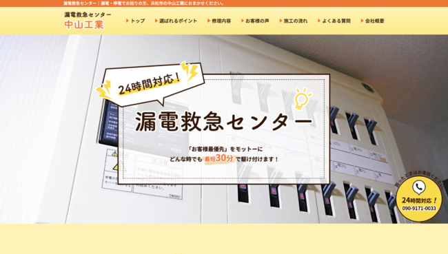 静岡県浜松市を拠点に、漏電やエアコンの修理、照明や冷蔵庫などの急を要する電化製品のトラブル等の解決を使命として活動する、株式会社中山工業(本社:静岡県浜松市、代表取締役:中山翔太)は、漏電に困った際の救急センターとして、「漏電救急センター」のサイトを立ち上げました。