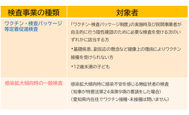 ■健康上の理由等によるワクチン未接種者や感染拡大傾向時の感染不安者の検査を無料化します。感染の状況に応じて、以下の2つの事業が実施されます。