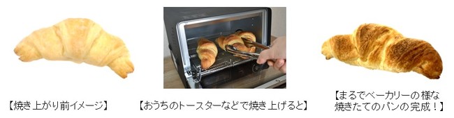 そのままでも食べることはできますが、おうちでトースターなどで数分焼きあげることにより、こんがりと色味が付き、パリパリ、じゅわっと、あつあつ、さくさくといった、まるでベーカリーの焼きたてパンの様な味わいや食感を手軽に美味しく楽しむことができます。