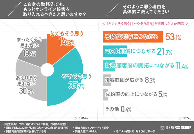 株式会社ライクネス(本社所在地:北海道札幌市、代表取締役:大居 由人)は、接客業に従事している方を対象に、「コロナ禍とオンライン接客」に関する調査を実施しました。