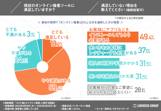 しかしその一方で、『アプリのインストールが必要』『使い方をお客様にレクチャーする必要がある』などの理由で現状のオンライン接客ツールに満足していない方がいることも、調査結果からは明らかになりました。