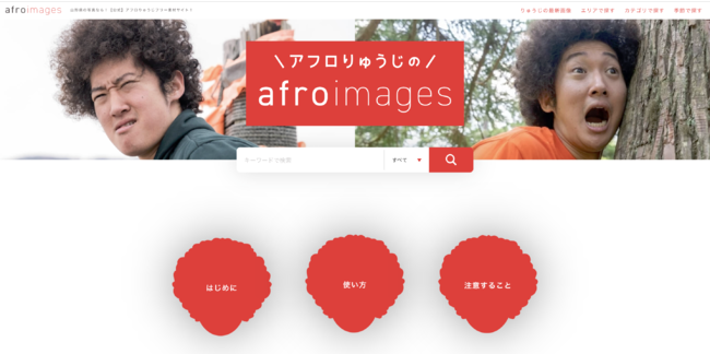 YouTuberアフロりゅうじがモデルを勤める”アフロ×山形”専門のフリー素材サイトです。