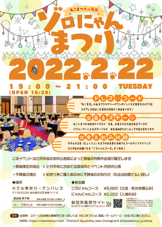 なお本年は、2022年2月22日に100年に一度の特別な「猫の日」を迎えるにあたり、これまでにない新たな企画として、猫にまつわるドレスコードを設けてのパーティー「ゾロにゃんまつり」を開催。