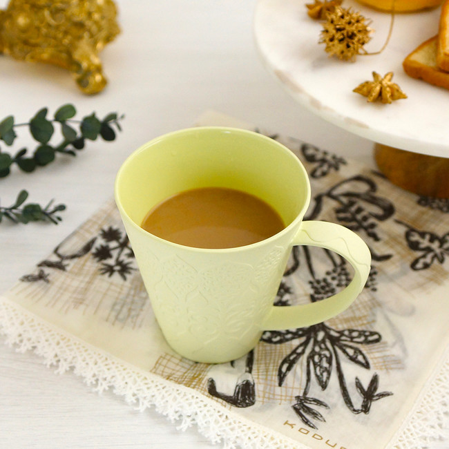 一日の始まりは美しいレリーフのマグカップ。心身共に息抜きできます!