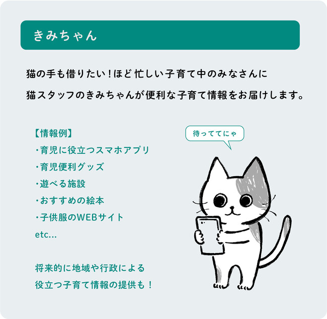 子育てに役立つ情報を効率的に探し活用することで心にゆとりができますし、パパ・ママが心穏やかでいることによる安心感はお子様にも伝播し、質の高い育児にも繋がっていくと考えます。