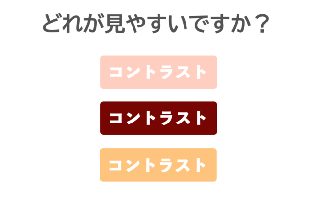 ウェブアクセシビリティのわかりやすい事例は、色の明度などを対比するコントラスト比です。