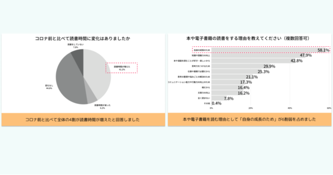 ・コロナ前と比べ41.2%が読書時間が増えたと回答