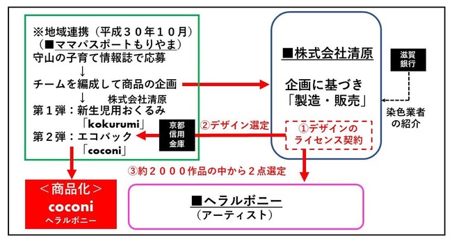 商品企画に関しては社内を中心に、ヘラルボニー様や地元子育てママさんや金融機関(京都信用金庫・滋