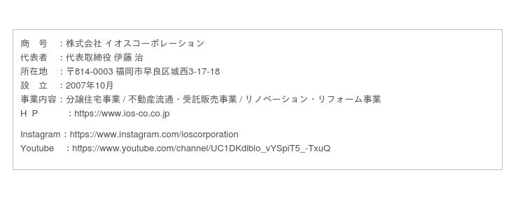 株式会社イオスコーポレーションは、「価値ある住まいで、暮らしを豊かに。」をモットーに、従来の建売住宅にないハイグレードでアイデアの詰まった「IDEA(イデア)シリーズ」を展開。