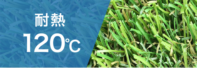 ポリエチレンの融解温度に着目し、改良を重ねた結果、120℃まで耐えられる人工芝が誕生しました。