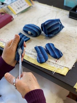 お預かりした服や着物、布地を確認して裁断しぬいぐるみを作製していきます。