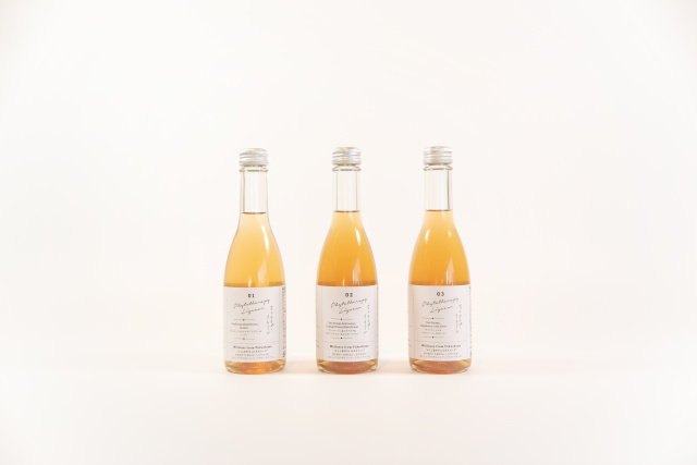 今回の商品は、このヴァンルージュをベースに、フィトテラピストの監修で、カラダにうれしいブレンドをしています。種類は3つ。この3つのコーディアルをそれぞれ発泡日本酒と合わせています。