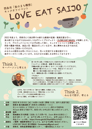まずは、西条市の食事業関係者を集め、2022年3月8日(火)にキックオフイベントを開催いたします。