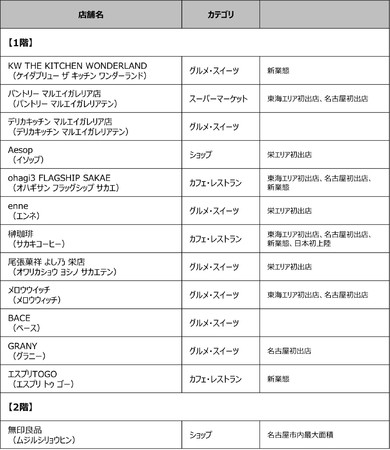 当施設は、地上3階建て、店舗面積約7,784平方メートル 。名古屋市最大面積となる「無印良品」や、株式会社丸栄の新業態となるレストラン「KW THE KITCHEN WONDERLAND(ケーダブリュー・ザ・キッチン・ワンダーランド)」、東海地区初出店の自然派スーパーマーケット「Pantry(パントリー)」、スキンケアブランド「Aesop(イソップ)」など、飲食店や総菜、雑貨など日常生活と食をテーマに36店舗のテナントが入店します。