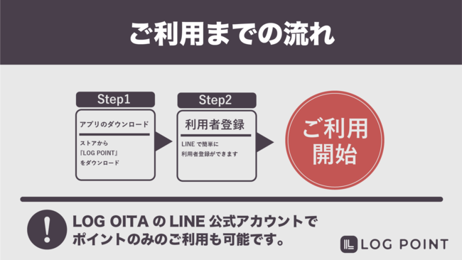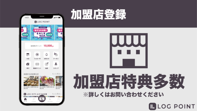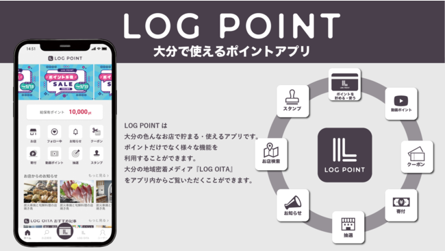 飲食店の情報や観光情報を日々発信しておりますが新型コロナウイルス感染症で外出を控え、飲食、観光業界は大きな損失をもたらした現状を受け、再び大分の活性化を図る目的として地域特化型のポイントアプリ『LOG POINT』をリリースする運びとなりました。