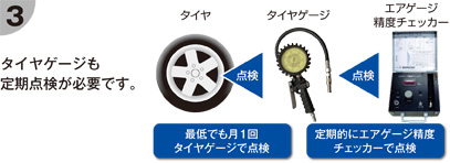 【少なくても年に一度はタイヤゲージの点検を行いましょう】
