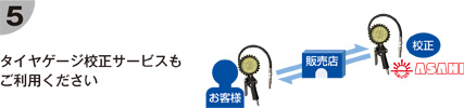 旭産業では購入されたタイヤゲージの点検を行い、誤差があれば適正な状態に修理してお返しする「タイヤゲージ校正サービス」(有料) を行っています。詳しくは購入された販売店または販売代理店にお問い合わせください。