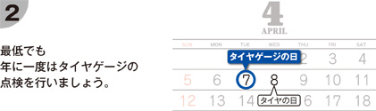 そのためタイヤゲージの精度が大変重要であり、定期的な管理を促すよう 2007年4月7日に 「タイヤゲージの日」 を制定しました。
