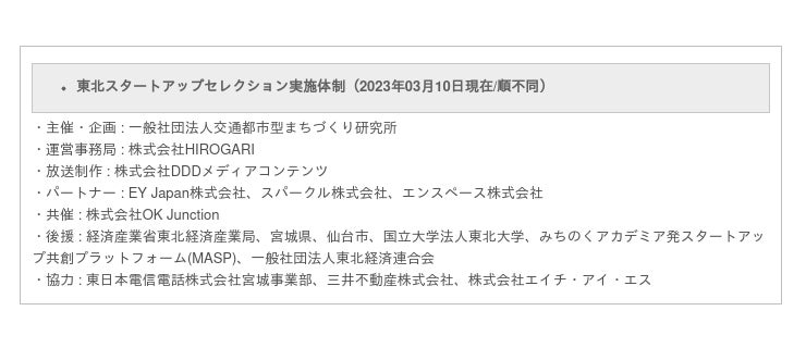 東北スタートアップセレクション 公式YouTubeチャンネル
